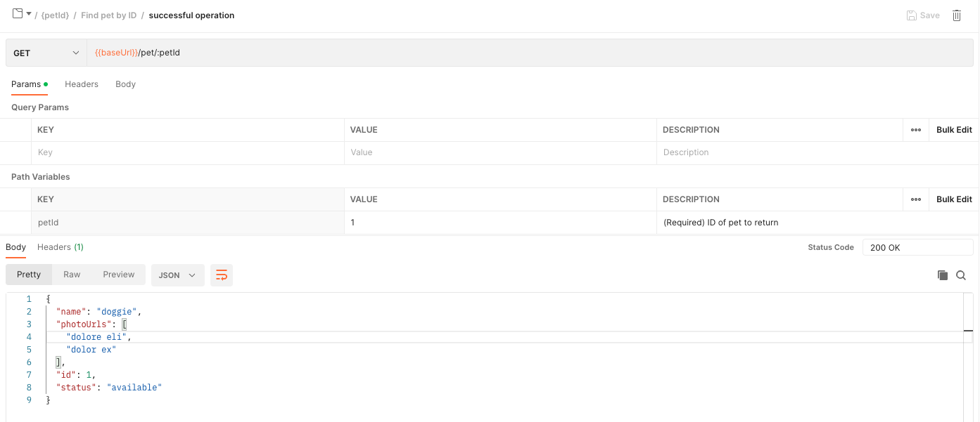 curl --location --request GET 'https://4271e5d3-910d-44ce-8ff3-cdf64991c219.mock.pstmn.io/pet/1' --header 'Accept: application/json'