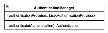 3. The Authentication Manager iterates through the Authentication Providers defined in Spring's context. It first calls their supports(Class<?>):boolean method and if the result is true, goes on to call authenticate(Authentication): Authentication.