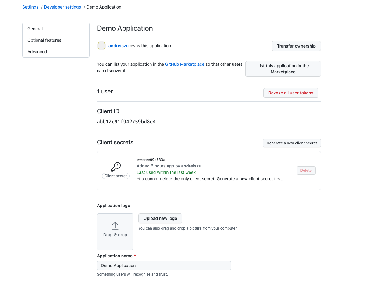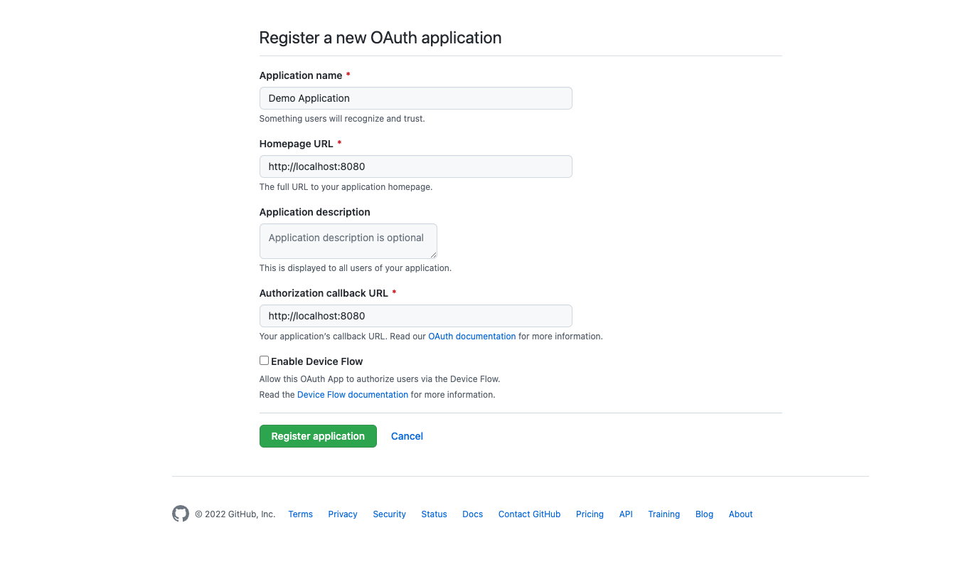 First, you need to go to GitHub and register your application at https://github.com/settings/developers
